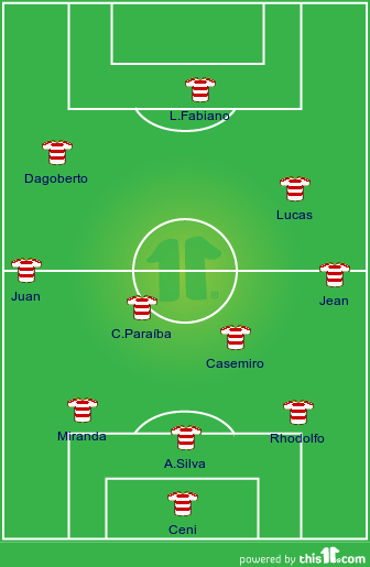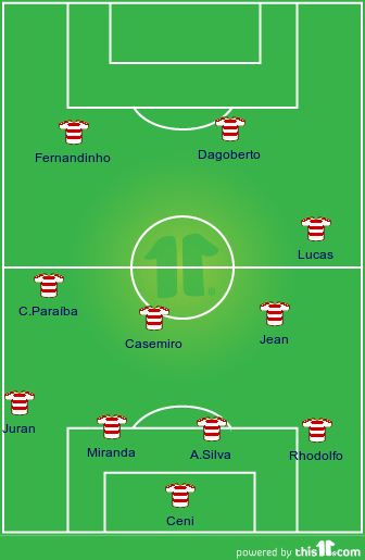 SPFC = Rogério Ceni; Rhodolfo, Alex Silva (Willlian José), Miranda e Juan; Casemiro (Ilsinho), Jean, Carlinhos Paraíba e Lucas; Dagoberto e Fernandinho (Marlos). Técnico: Paulo César Carpegiani.